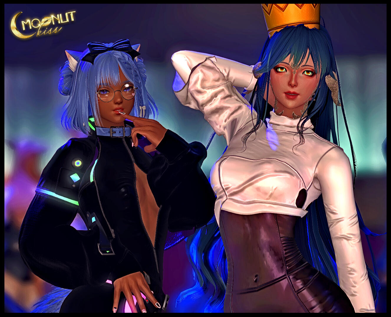 Moonlit Kiss first opened as a tavern in Elana's Shirogane medium-sized personal house. The venue quickly grew into a popular entertainment hotspot, now located in Crystal and Light Data Centers. Elana's goal is to create a casual atmosphere for people to hang out and make new friends. Whether you are experienced or new to the role-play scene, all are welcome at Moonlit Kiss.